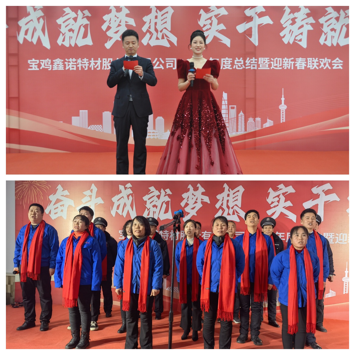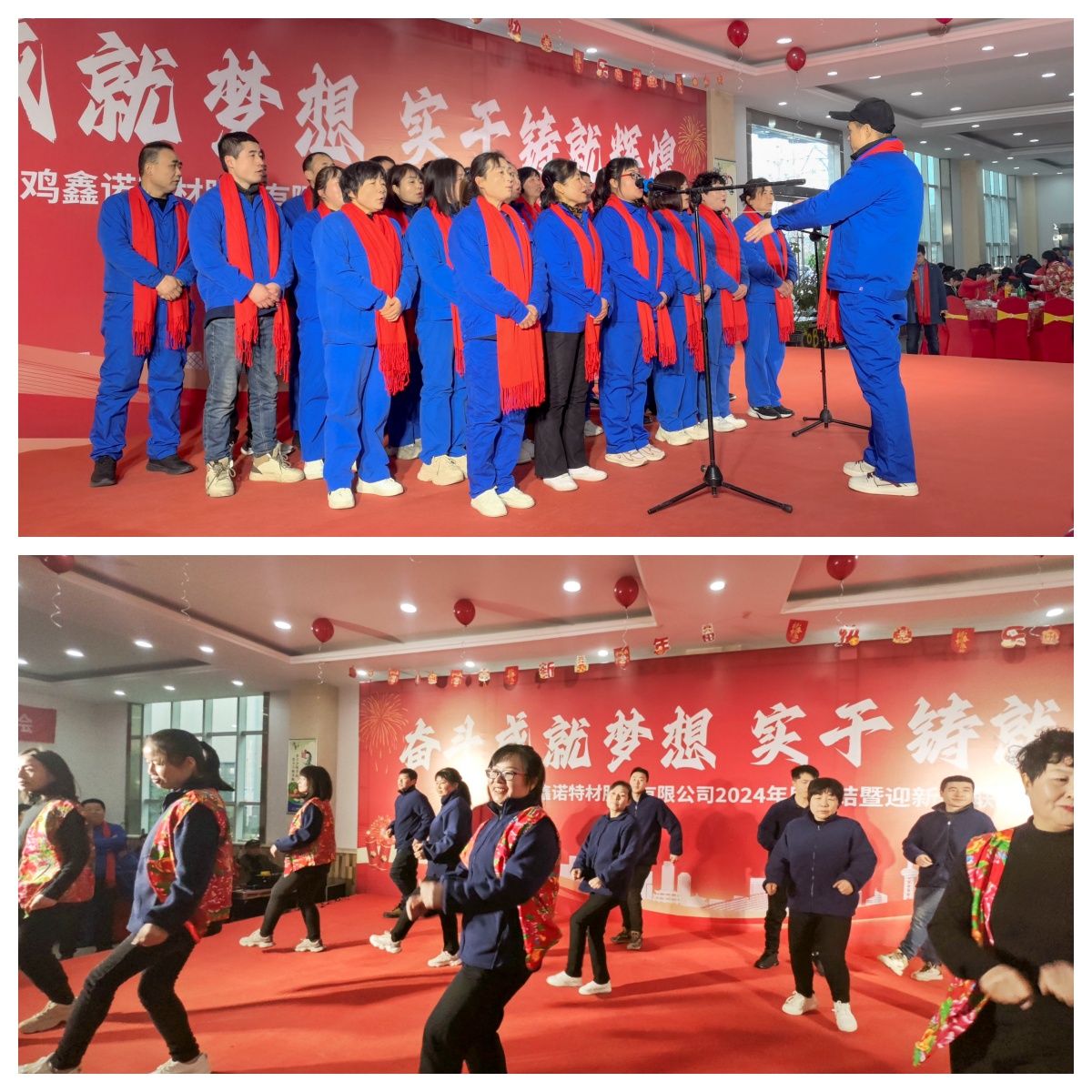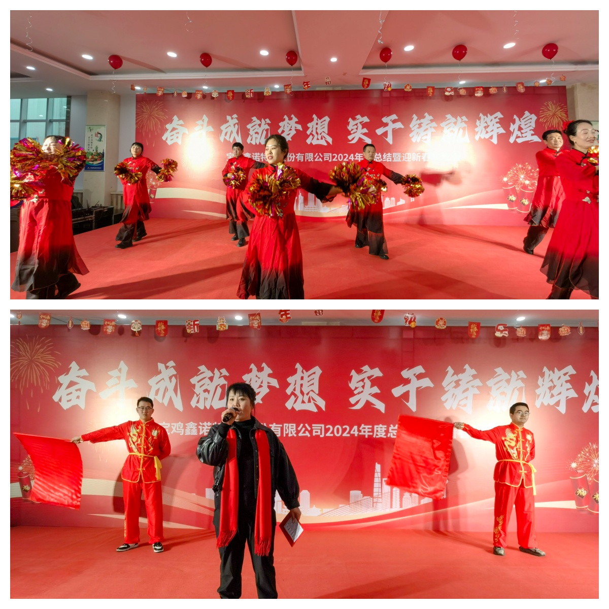 1月25日,寶雞鑫諾特材股份有限公司隆重舉行2024年度總結(jié)表彰暨迎新春聯(lián)歡會(huì)。公司黨支部書(shū)記、董事長(zhǎng)鄭永利、各中心副總及230余名員工歡聚一堂,共同慶祝新春佳節(jié)的到來(lái)。