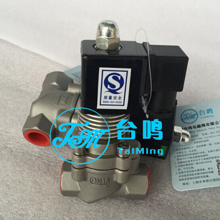 上海臺鳴蒸汽電磁閥采用活塞式結構,密封性超好,無泄漏,高溫蒸汽電磁閥閥芯采用標準304、316制作,防腐性能超好,不銹鋼蒸汽電磁閥適用于高溫蒸汽、過熱蒸汽、導熱溫、柴油、蒸餾水、電鍍廢液等流體介質。