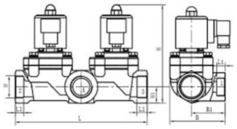 雙線圈二位三通電磁閥外形尺寸:
